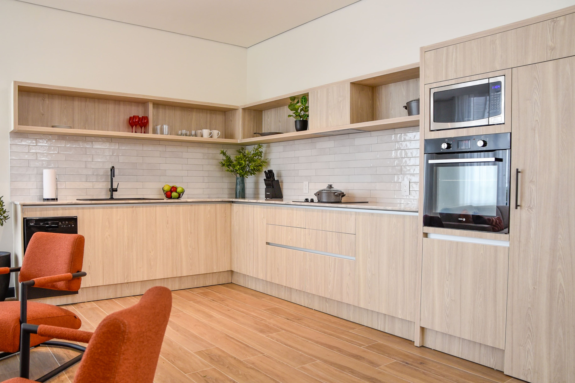 This elegant two-bedroom apartment is designed with both functionality and style in mind. Located within a secure, gated complex, the unit features: