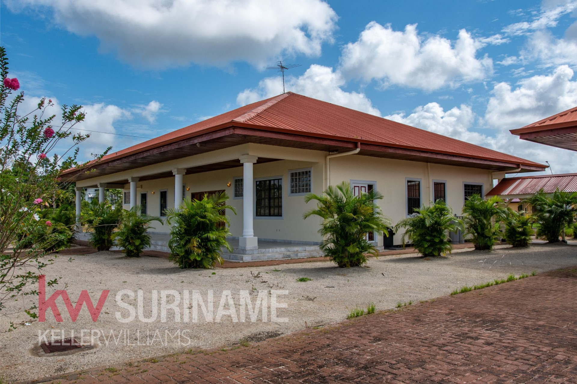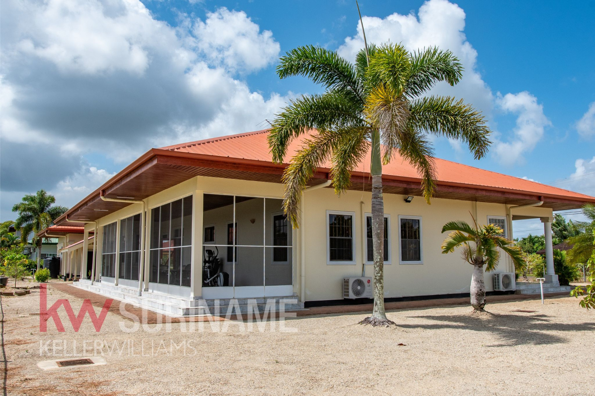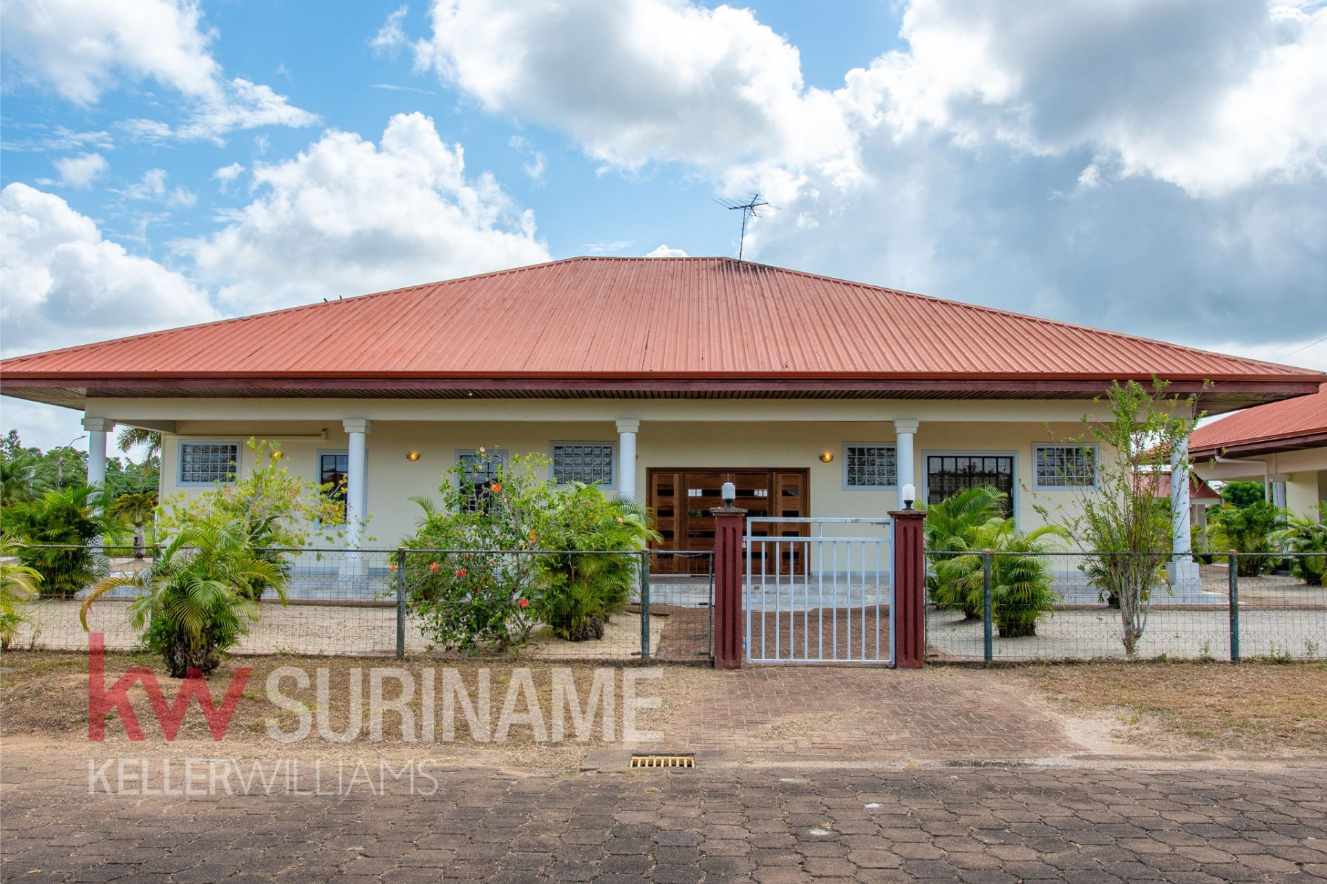 In de exclusieve en rustige gated community Palm Village in het district Commewijne bevindt zich deze stijlvolle en uitstekend onderhouden 2-slaapkamerwoning. De woning is gelegen op een royaal eigendom perceel van circa 2.200 m², wat volop mogelijkheden biedt voor uitbreiding of verdere ontwikkeling.