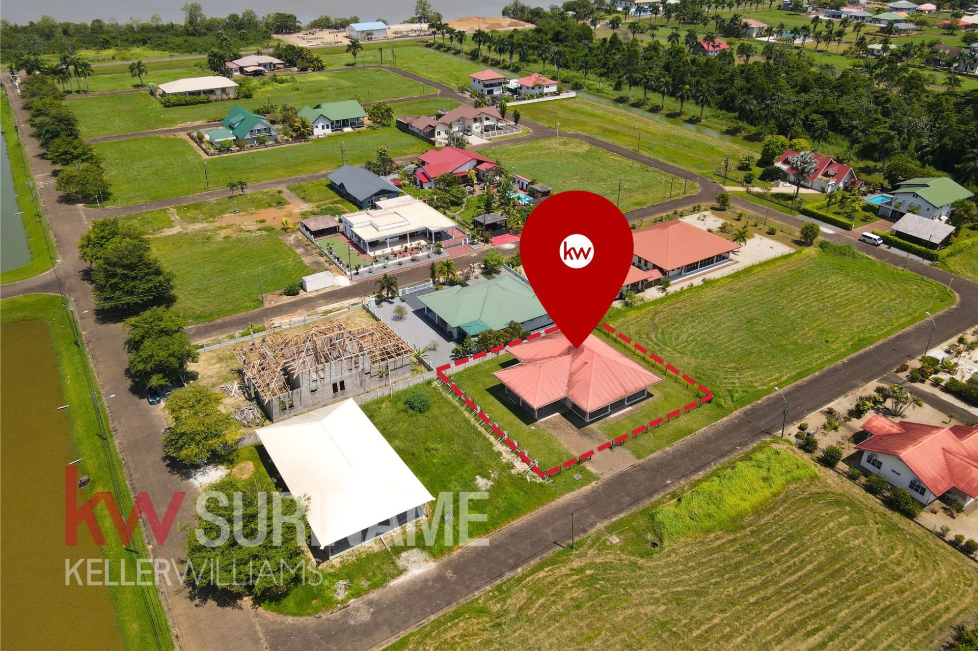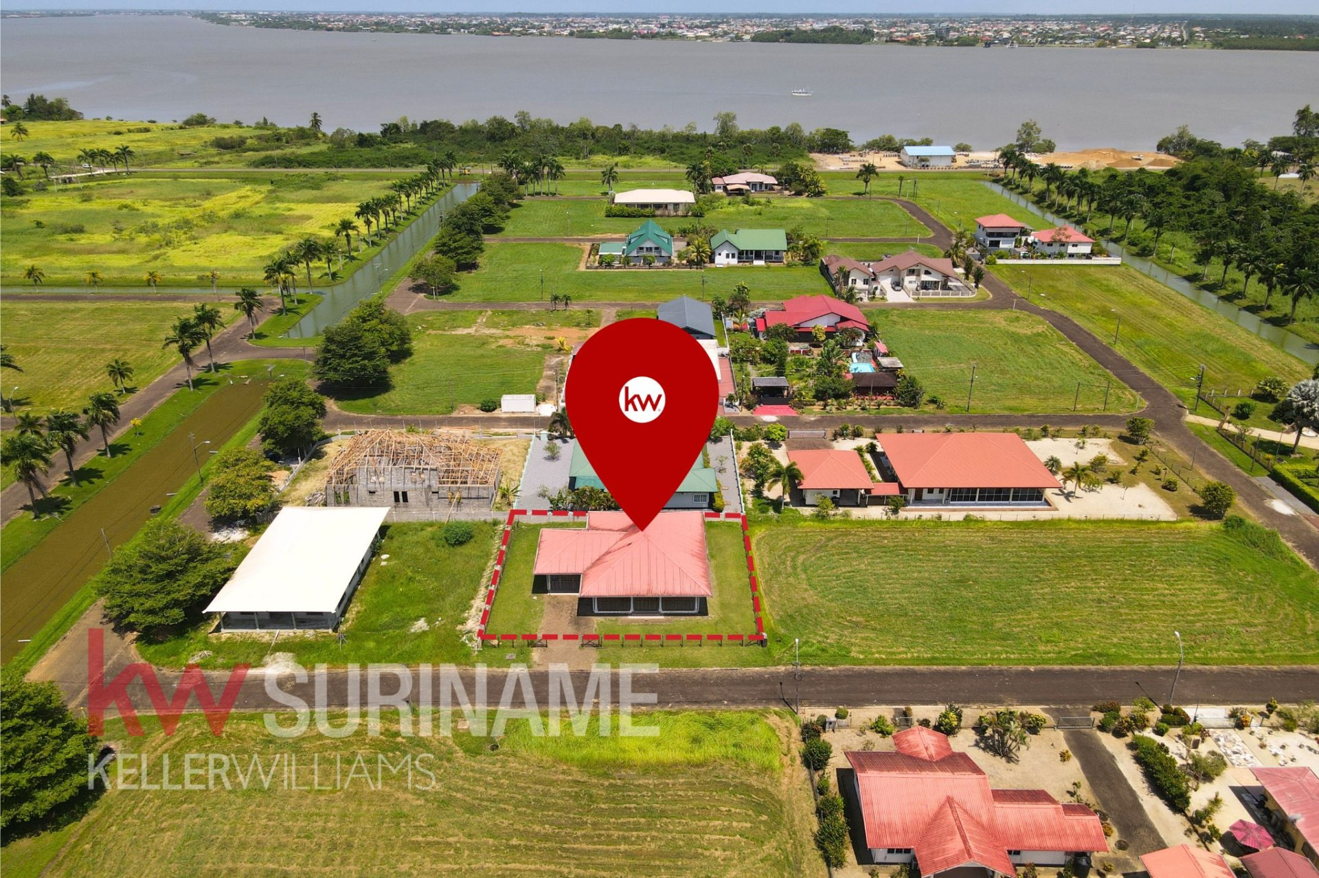 Deze woning in Commewijne bevindt zich in de welbekende gated community, Palm Village, die bekend staat om zijn rust en veiligheid. Bij aankomst wordt u begroet door een wachter die elke bezoeker registreert, en u treft 2 hefbomen aan. De wachters zijn er 24/7. Wat kunt u aantreffen in deze gated community? Schone wegen en bermen, goede afwatering (het loopt nooit onder water!), heerlijke bries en rust.